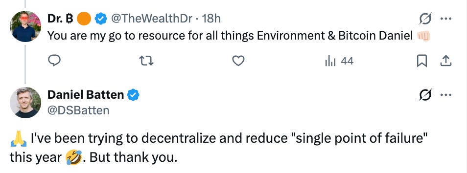 And finally, if you want to share a video on why hitting global green-energy transition goals may be impossible without Bitcoin mining, take a listen to my conversation with Decentra Suze, host of My Two Sats on Roxom TV. (21 mins)